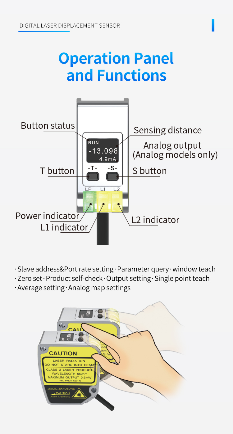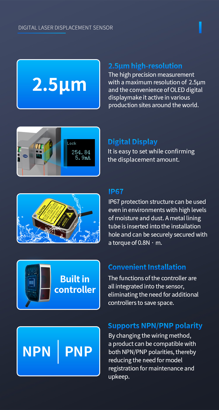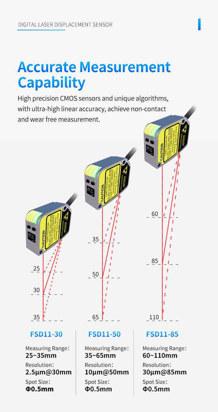 Højpræcisions CMOS-sensorer og unikke algoritmer, med ultrahøj lineær nøjagtighed, opnår berøringsfri og slidfri måling.