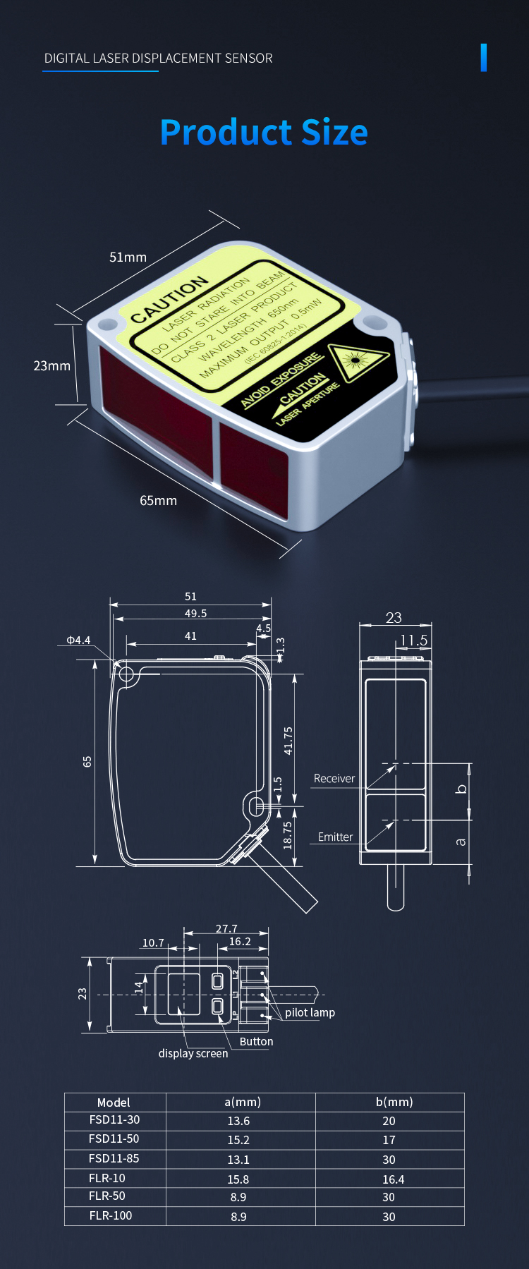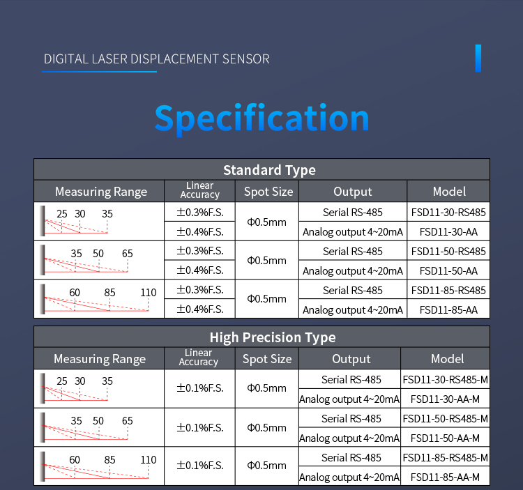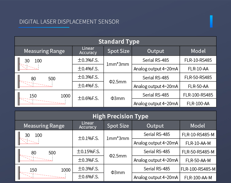 Kina Høj nøjagtighed 0,01 mm laserforskydningssensor Leverandør, producent - Direkte fabrikspris - Fuwei Model: FSD11-85-RS485-M 20-meters laserområdesensor