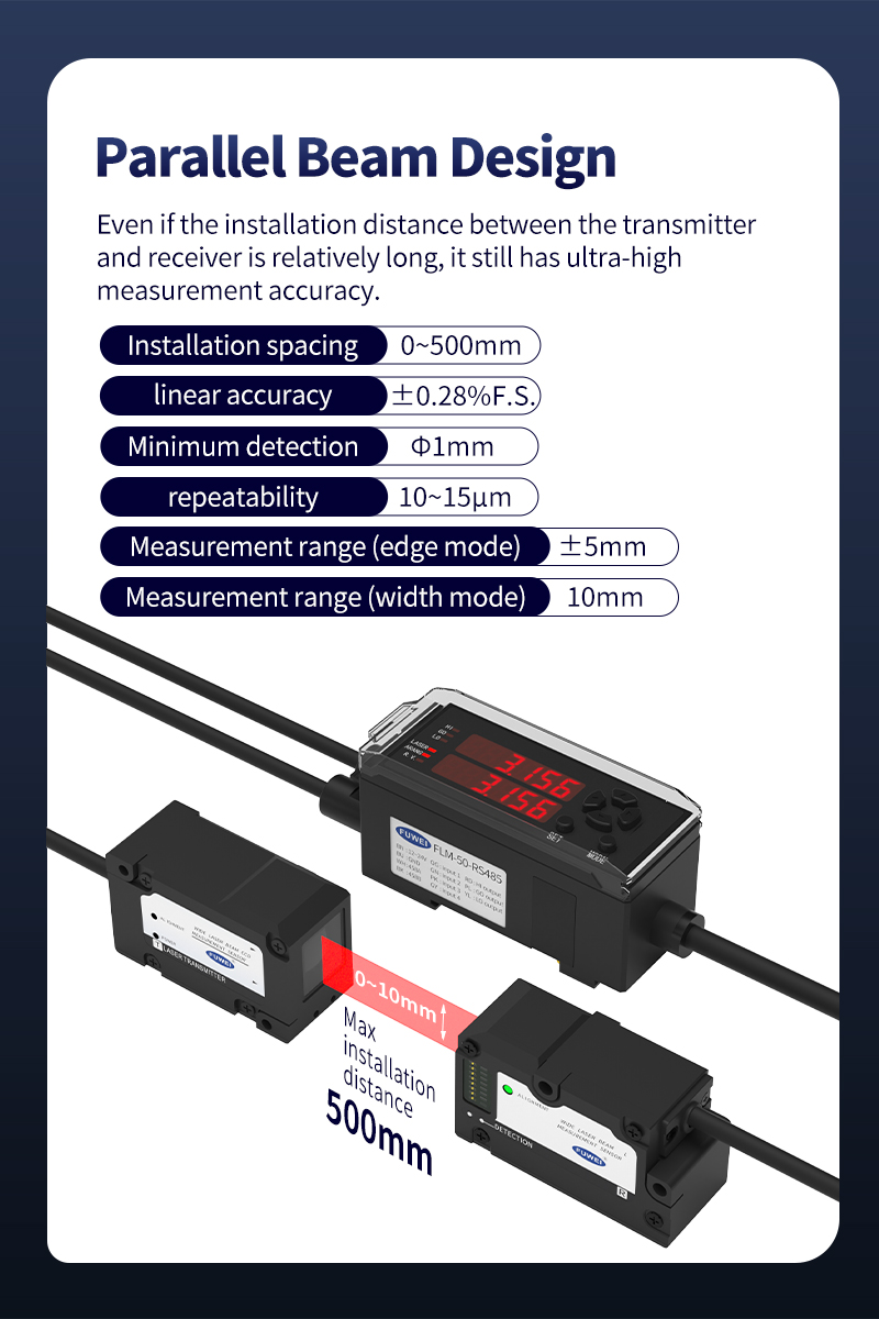 Under bølgen af industri 4.0 er højpræcision, ikke-kontaktmålingsteknologi blevet "kernemotor" for intelligent fremstilling, ogCCD -ledningsdiametermålesensorerer blevet et nøgleværktøj inden for præcisionsfremstilling på grund af deres fremragende realtidsydelse, anti-interferensevne og mikronniveau-nøjagtighed. FLM-50-RS485 laserafstandsmålingssensor lanceret af FWE tager 2ms hurtige respons og 10μm gentagelighed som kernefordele, og kombineres med innovativt design for at give effektive og stabile målingsløsninger til industrielle scenarier.