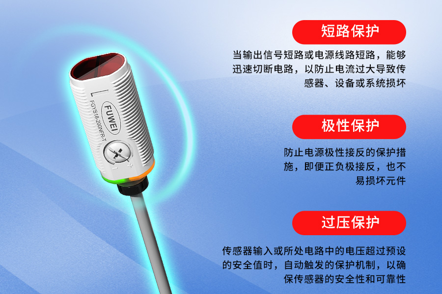 Sensorens ekstraordinære ydelse demonstreres først gennem dets omfattende tredobbelte beskyttelsessystem. I tilfælde af udgangssignal kortslutninger eller strømlinjekort kredsløb kan enheden afbryde kredsløbet inden for millisekunder, hvilket effektivt forhindrer strømoverbelastningsskader på systemet. Et unikt design af polaritetsbeskyttelse sikrer, at selv hvis operatører ved et uheld vender strømforsyningspolariteten, forbliver sensorens kernekomponenter intakte. Overspændingsbeskyttelsesmekanismen aktiveres automatisk, når indgangsspændingen overstiger forudindstillede sikkerhedsgrænser, hvilket giver omfattende sikkerhedsforanstaltninger til stabil drift i komplekse industrielle miljøer.
