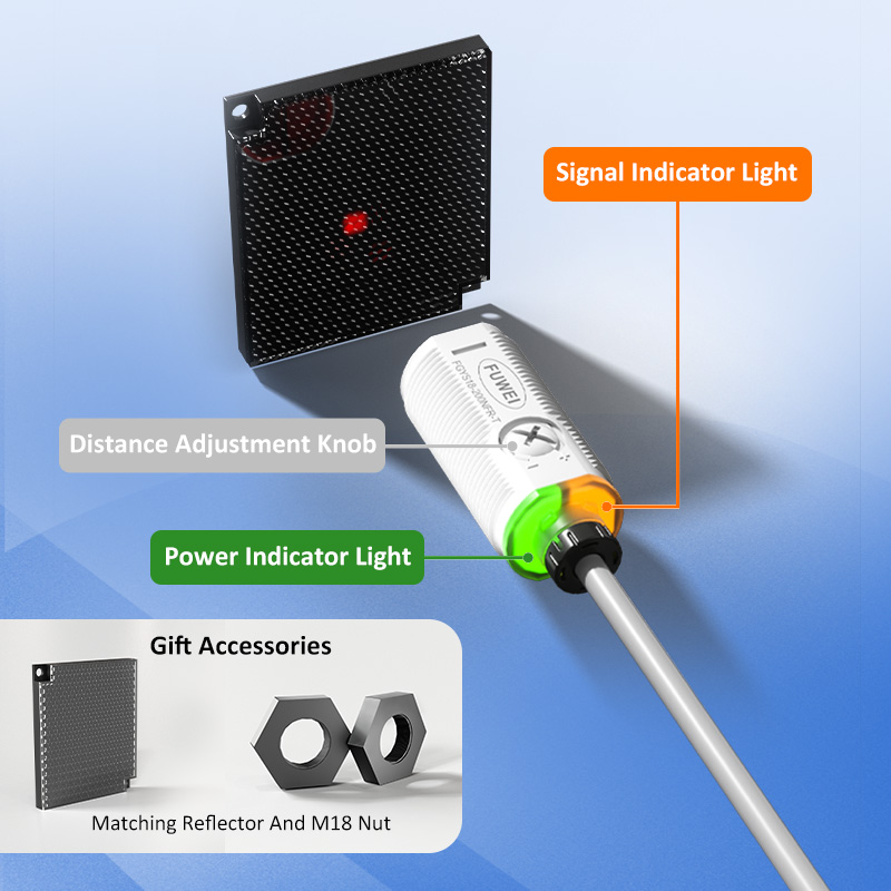 FGYS18-200NFR-T professionel transparent flaskedetektionssensor anvender avanceret linsereflektionsprincip og coated optisk filterteknologi til effektivt at løse gennemsigtige beholderdetekteringsudfordringer. It features a 2-meter adjustable detection range with visible red light spot for precise positioning. Udstyret med tredobbelte beskyttelsesmekanismer (kortslutning, omvendt polaritet og overspænding) og kvartslinser, der er modstandsdygtige over for termisk deformation, sikrer det stabil optisk sensor Transparent Object Detection Mirror Reflection M18 2m Detection Distance Cylindrical Sensoroperation i barske industrielle miljøer med exceptionel anti-interferens-sikkerhedskapacitet, hvilket gør den til et automatisk valg af pålidelige produktionslinjer.