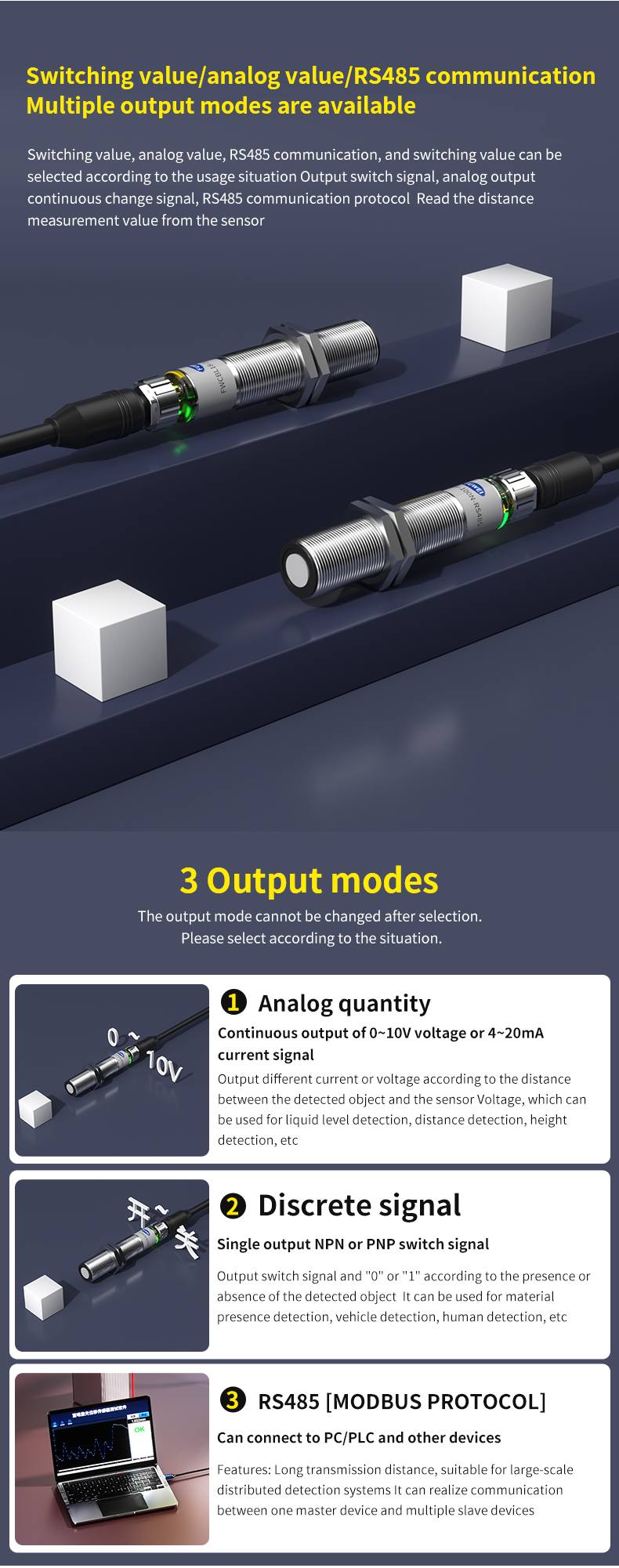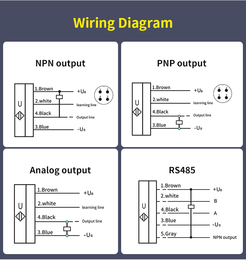 Fuweidian-ultralydsafstandssensoren er en højtydende løsning til industriel kvalitet. Den integrerer tre udgangstilstande – analog, switching og RS485-kommunikation – og leverer enestående alsidige tilslutningsmuligheder. Med en høj opløsning på 0,5 mm og en snæver emissionsvinkel på ±7° garanterer sensoren præcis måling og overlegen anti-interferensevne i forskellige komplekse industrielle miljøer. Dens karakteristiske fordel ligger i detektering, der er fuldstændig upåvirket af målobjektets materiale, overfladefarve eller glans, hvilket giver en stabil og pålidelig løsning til niveauregistrering, objektdetektering og kontinuerlige afstandsapplikationer. Denne robuste og holdbare sensor er den ideelle sensorpartner til at opnå højeffektiv automatisering og intelligente opgraderinger.