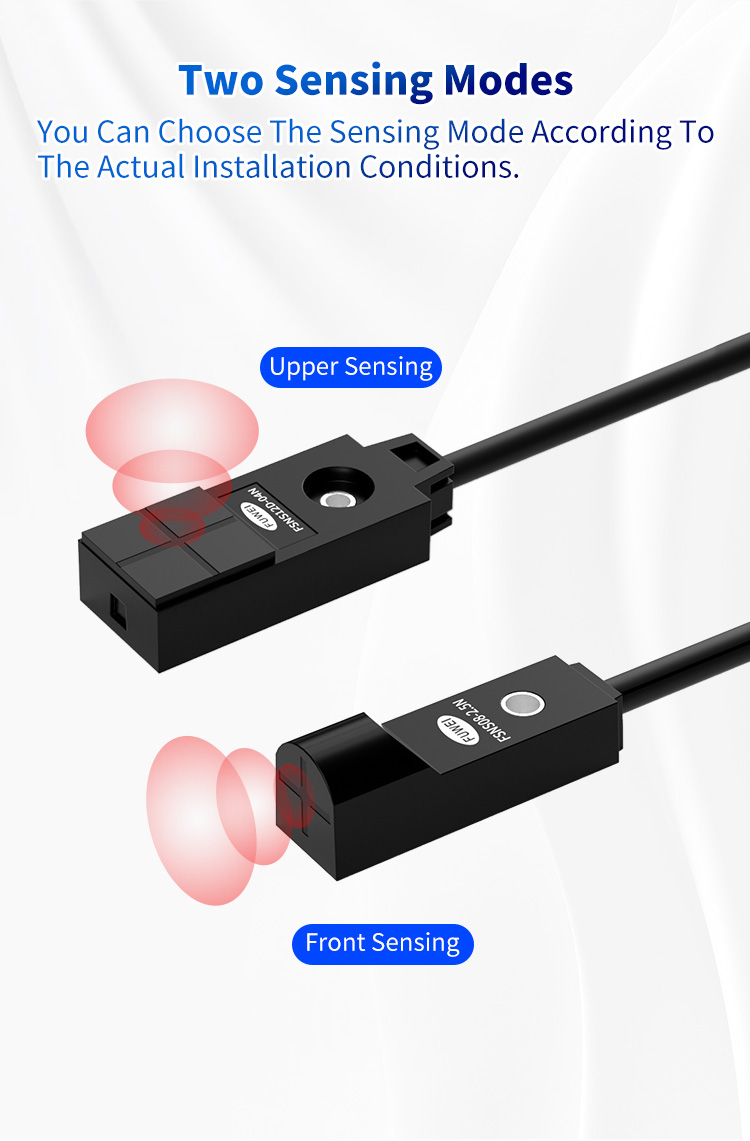 Standard induktive sensorer begrænser ofte dine design- og installationsmuligheder med en enkelt, fast sensortilstand. FSNS12D-04N bryder denne begrænsning med sine banebrydende to sensortilstande. Denne unikke funktion giver dig hidtil uset fleksibilitet, så du kan vælge den optimale sensortilstand baseret på dine faktiske installationsforhold. Uanset om du har brug for radial, aksial eller en hvilken som helst ukonventionel monteringsvinkel, tilpasser denne sensor sig til dit layout – ikke omvendt. Denne fleksible installationsevne forenkler systemintegration, reducerer designkompromiser og skærer drastisk ned på idriftsættelsestiden.