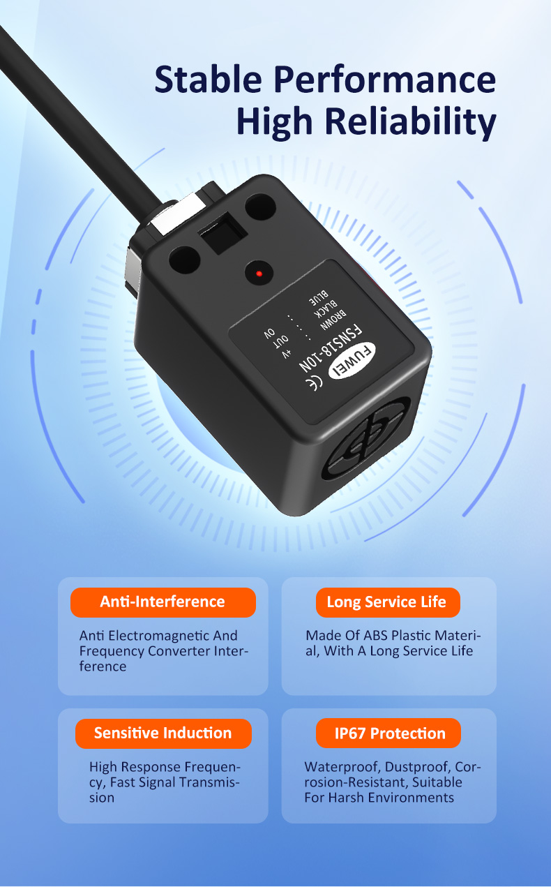 I det moderne industrielle automationslandskab, hvor effektivitet og præcision er i højsædet, er pålidelig detektering af hver komponent hjørnestenen i en problemfri drift. FSNS18-10 Series Square Proximity Sensor fra Fuwedi Electronics er den førende løsning udviklet til denne kritiske opgave. Mere end blot en sensor, den fungerer som en "Intelligent Perception Agent" på din produktionslinje. Med sin stabile 10 mm detektionsafstand, indbyggede intelligente chip og holdbarhed af militær kvalitet, anvendes den i vid udstrækning på tværs af industrier som værktøjsmaskiner, tekstiler, logistik og autoreparationer, dedikeret til at hæve dit udstyrs intelligens og produktivitet.