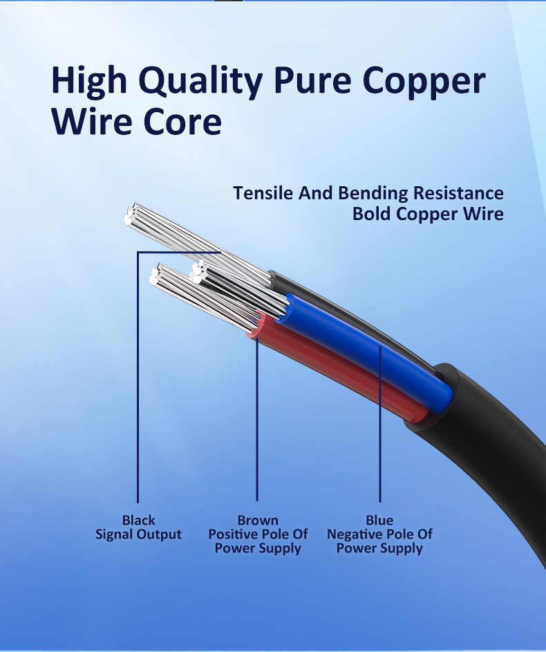 Enestående stabilitet og høj pålidelighed: Vi forstår de barske realiteter i industrielle miljøer - vibrationer, olieforurening og temperatursvingninger er normen. FSNS18-10-serien anvender komponenter af høj kvalitet og avanceret kredsløbsdesign for at sikre, at ydeevnen ikke forringes under kontinuerlig drift med høj intensitet. Uanset om den står over for de konstante vibrationer fra tekstilmaskiner eller de høje temperaturer og olietåge i en værktøjsmaskine, præsterer den konsekvent og giver et stabilt og højtydende output for at sikre kontinuerlig drift af din produktionslinje.1.3. Genialt design, holdbart og langtidsholdbart højstyrke ren kobbertrådskerne: Vi er overbevist om, at intern kvalitet bestemmer produktets levetid. Sensorkablet bruger rent kobber af høj kvalitet til trådkernen, hvilket giver fremragende ledningsevne og lavere signaltransmissionstab. Samtidig giver den rene kobber kerne kablet enestående træk- og bøjningsmodstand. Selv efter gentagne træk eller bøjninger forhindrer det effektivt internt brud, forlænger dets levetid i dynamiske applikationer og minimerer nedetid forårsaget af kabelskader.